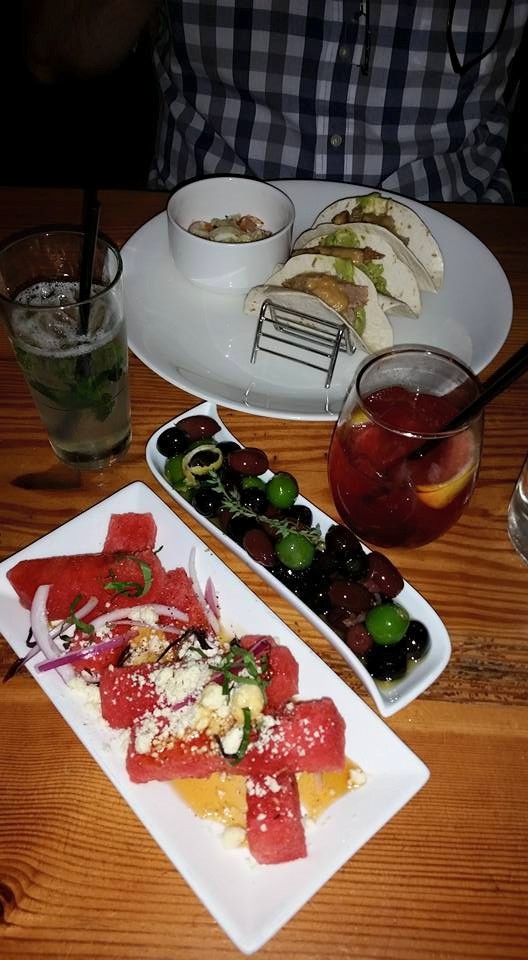 Stop five: Virtue Feed & Grain. An available table was too hard to resist. We grabbed a seat, skipped the beer, and ordered some drinks and another snack. This time it was pork tacos and watermelon with feta. We’ve been past this restaurant many times, but never stopped in. It was a fabulous surprise! Scrumptious food made for the perfect break from the increasing heat outside and crowds at the bars showing the obvious success of the pub crawl.