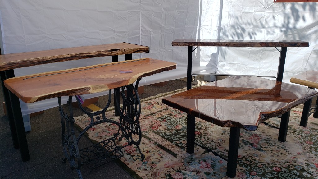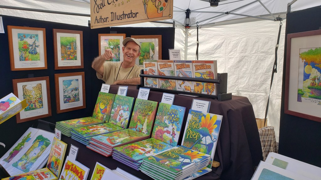 We wandered past a writer/illustrator, painters, photographers and woodworkers showing off stunning examples of craftsmanship. We admired a bronze sculpture and swapped jokes with the artist.