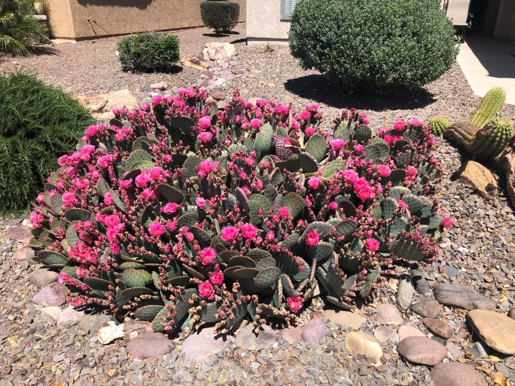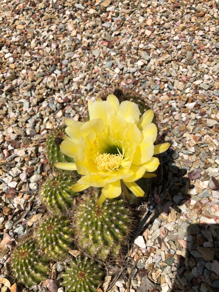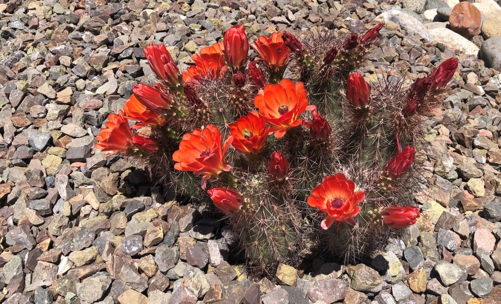 Greg and I are taking walks in our neighborhood and the adjacent Sonoran desert almost every day. It’s nice to get out and enjoy a little sunshine while we stretch our legs. One of the benefits of our daily strolls is the chance to enjoy all the spring flowers that are blooming. I’m loving the colors – all the yellows, reds, purples, oranges, pinks. You get the point.