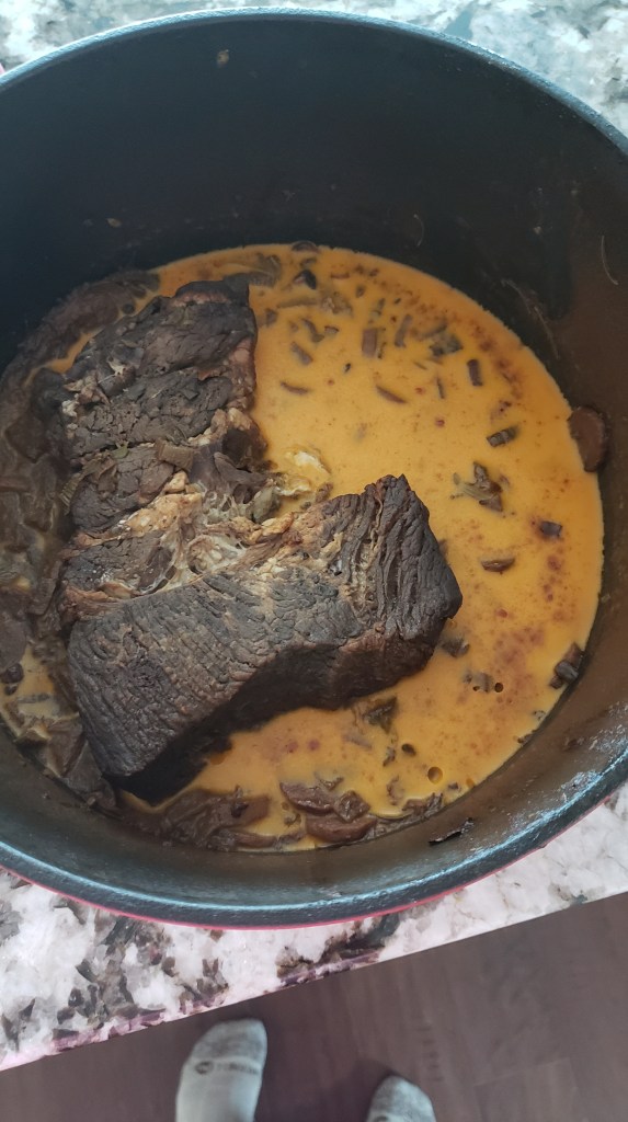Now here’s the real secret. When your brasato is cooked, let it cool to room temp and pop it into your fridge for two to three days. Trust me on this. I’ve eaten it right away and three days later and waiting is OH SO WORTH IT!