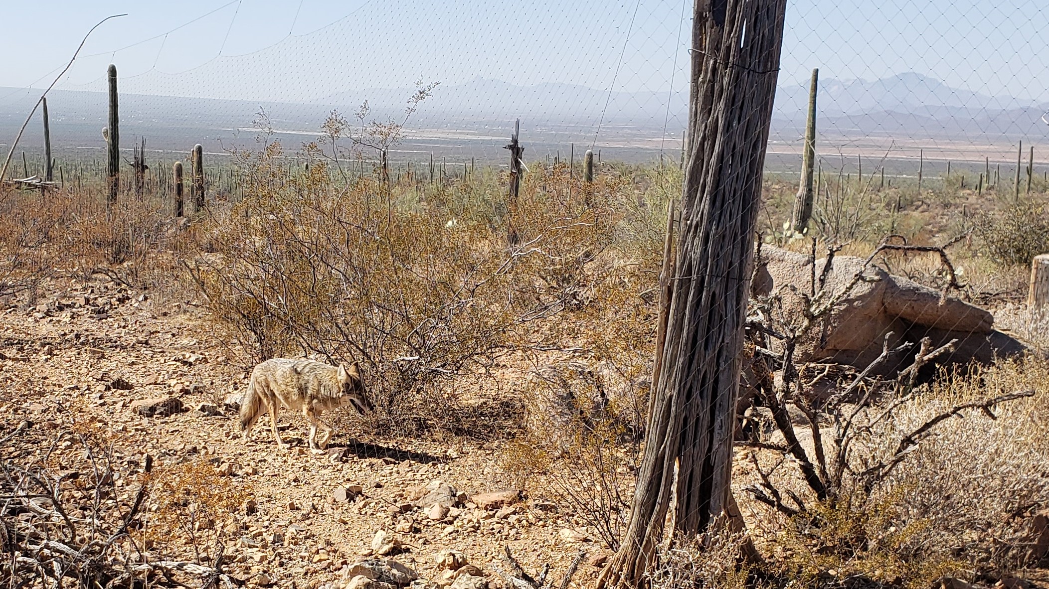 A coyote strolled among the cacti behind an enclosure fence that is so well done we didn’t see it at first. I froze in my tracks wondering how close he would get before I noticed the barrier.