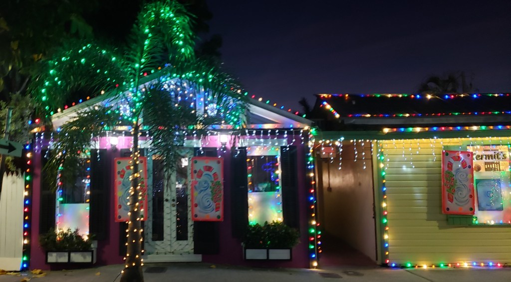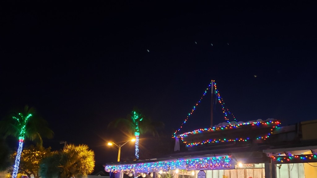 Despite the steamy days and sultry evenings, we walked through neighborhoods and admired the Christmas lights on display. Just like everywhere else, islanders drape lights and garlands on their porches, windows and doors. Of course, there are plenty of nods to the beach vibes and latitude.