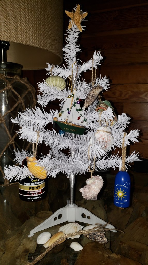 The Christmas feeling urged me on … I ordered a tiny Christmas tree from Amazon and decorated it with silly souvenir ornaments. It will be a desk tree for years to come and remind me of this place we love.
