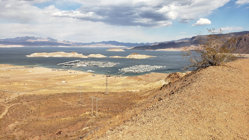 The trail itself is a terrific overlook to view Lake Mead and its harbor. We marveled at the scene and discussed how low the water was as we strolled through the tunnels.