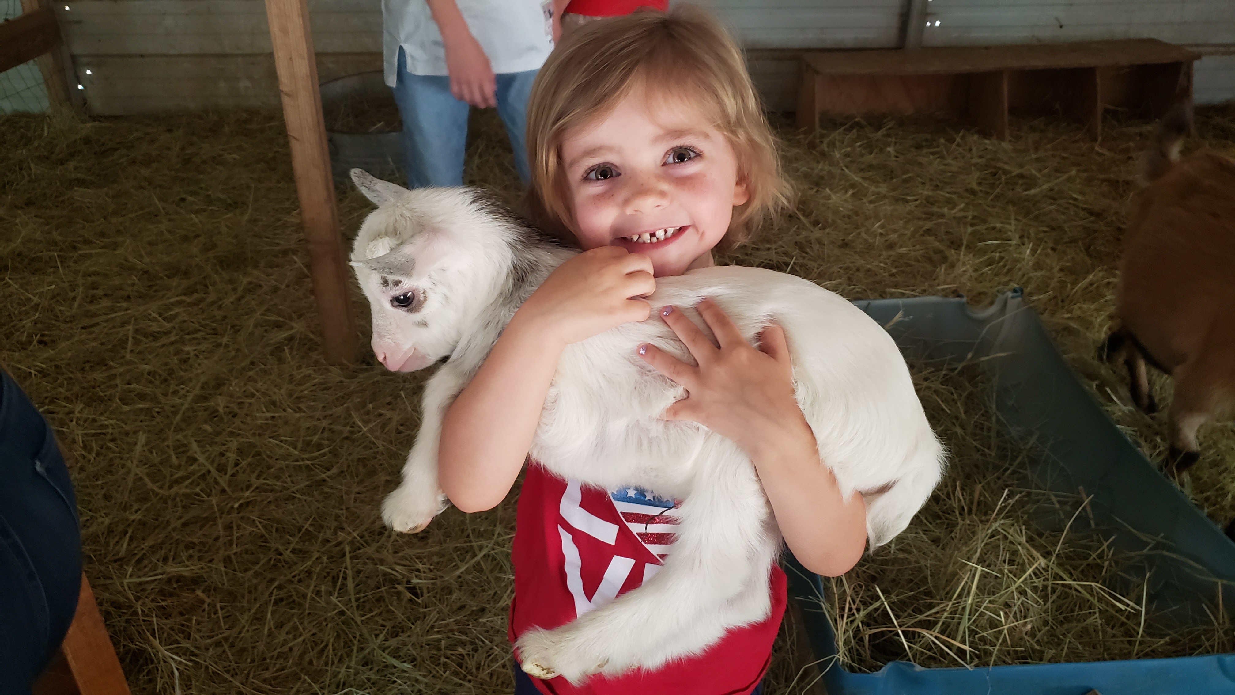 Once they are grabbed, the babies give out a single loud “maaaaa” then nestle down in for hugs. Even four-year-old Dani had no trouble holding on to a baby.