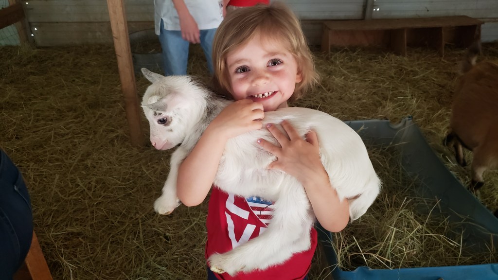 A recent trip to visit my daughter and her three cuties gave me the chance to experience this phenomenon for myself. I’ll admit it, baby goats are absolutely adorable.
