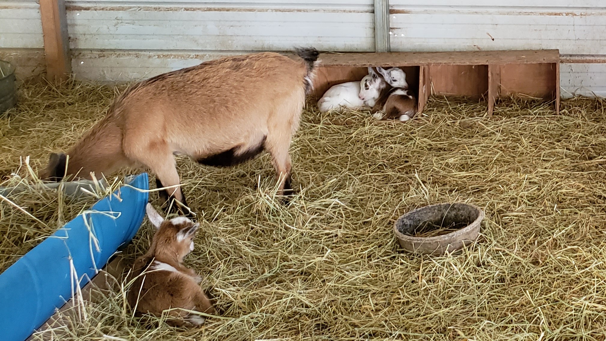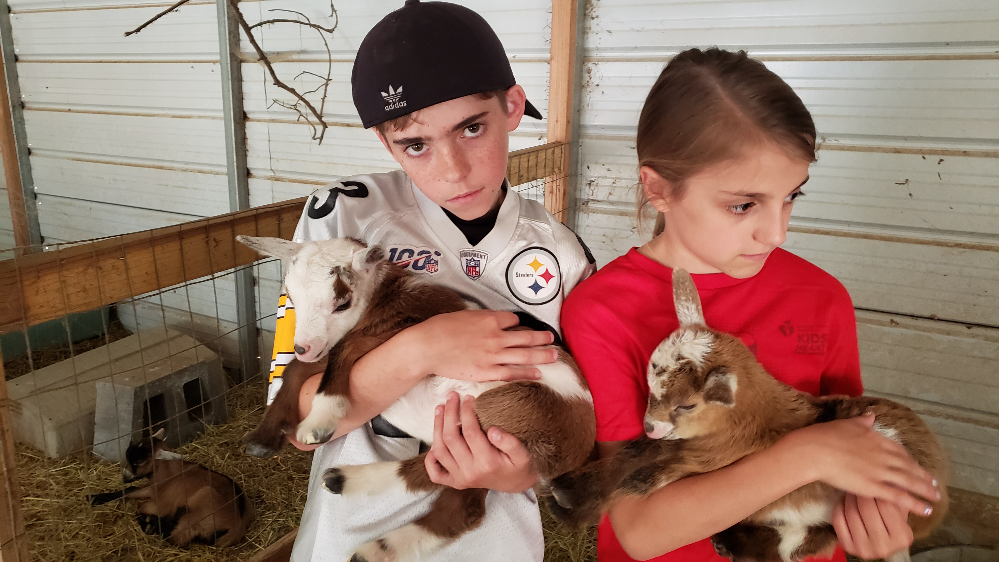 Stacy has a friend who raises baby goats, chickens and a couple of other farm animals. She has taken the kids to the farm regularly to see the babies and get some snuggle time.