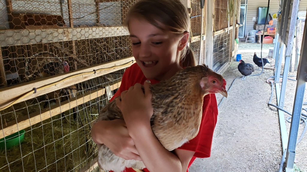 The farm visit gives the kids a chance to see how much work is involved in animal farming. They help feed the goats, pigs and even chickens when their visits coincide with meal times. This visit didn’t include meals, but gave the kids the chance to hold one of the chickens.