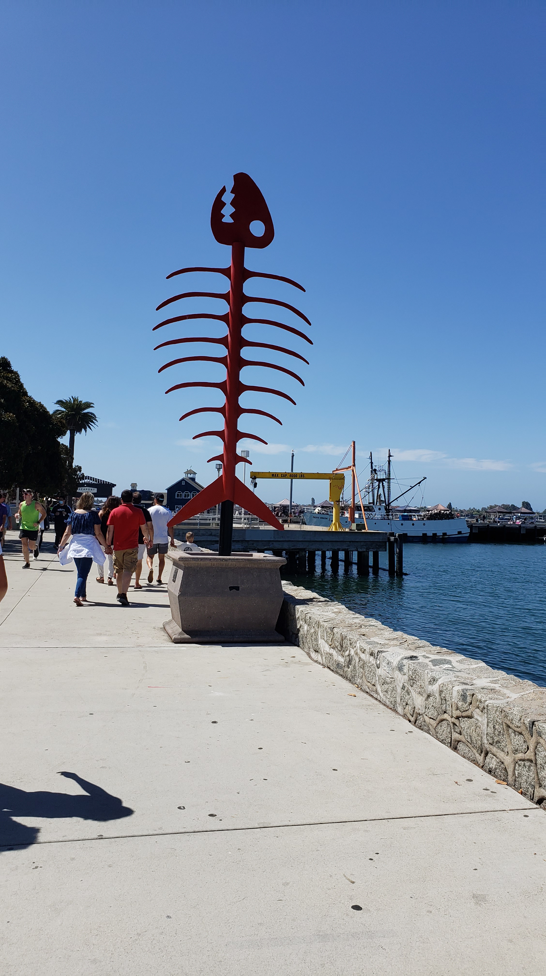 I’ve snapped pics of funky totem poles and fish skeletons along the promenade in San Diego.