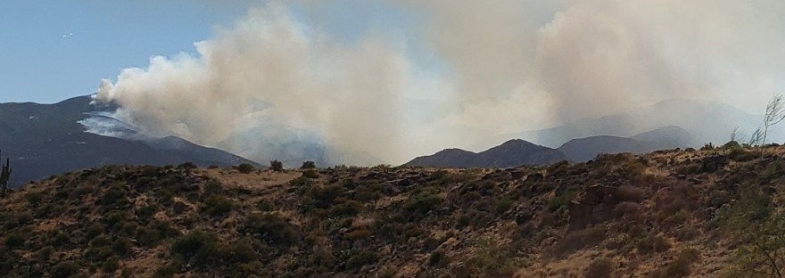 Tuesday (July 6) while driving home from the Grand Canyon, we noticed the smell of smoke in the car before we spotted plumes rising above Crown King in the Prescott National Forest. It’s one of several blazes firefighters are struggling to bring under control in Arizona.