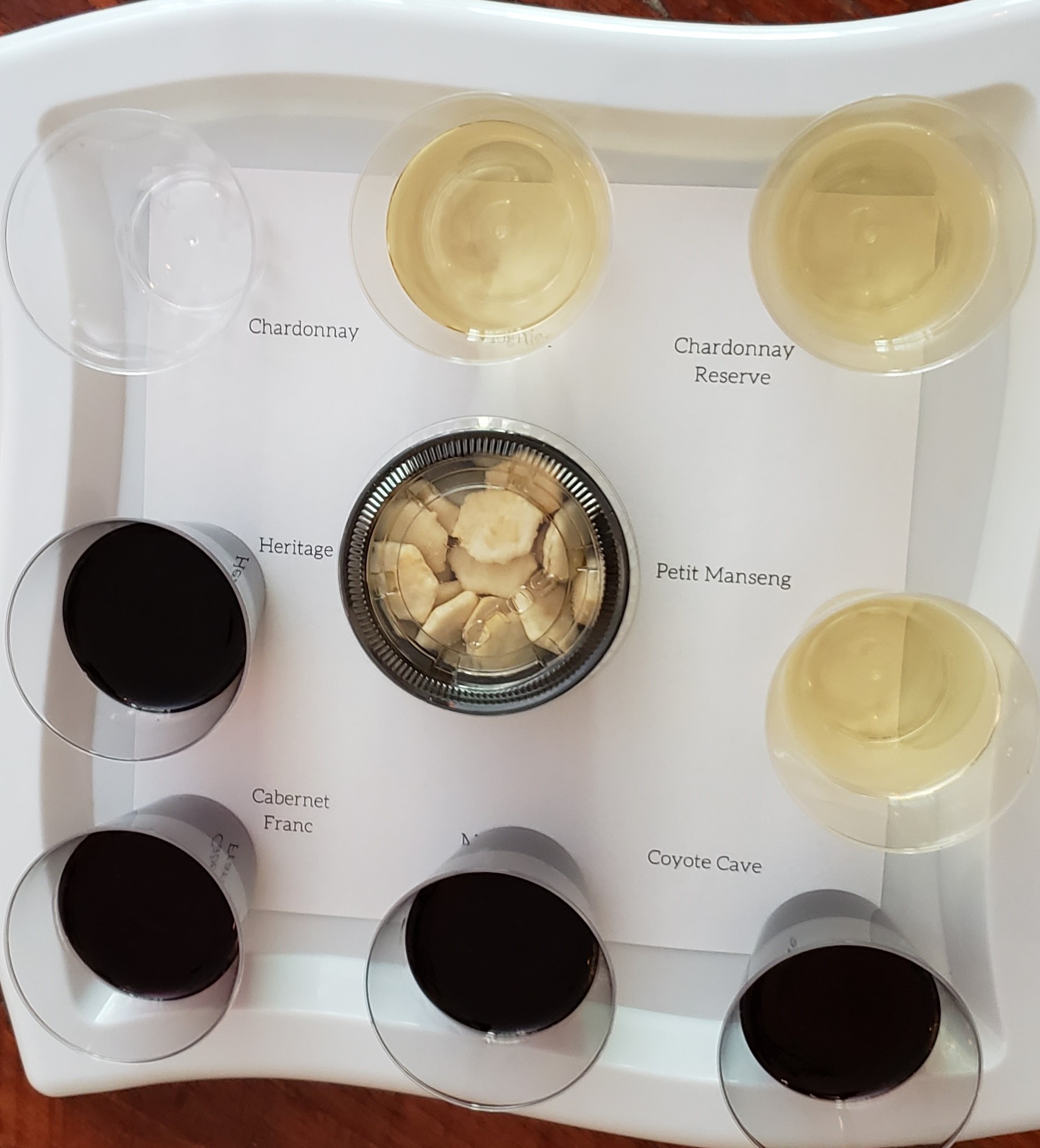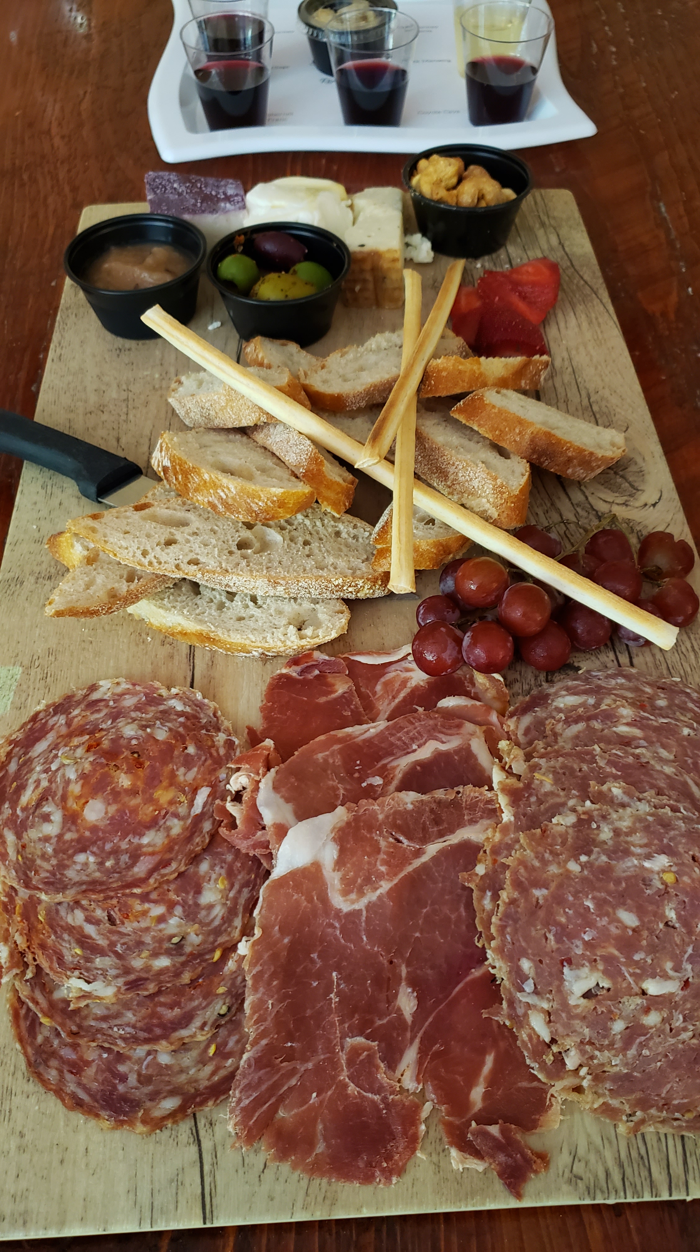 A flight of eight wines seemed the perfect introduction. We added the robust “Le Grand Cru Platter”, giving us plenty of options for sipping, pairing, and nibbling.
