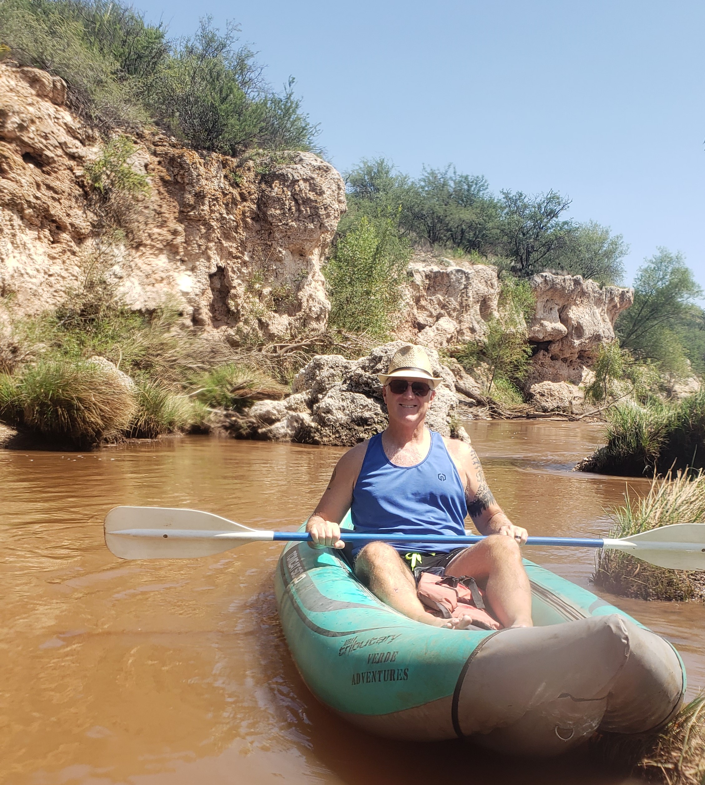 We arrived in Cottonwood’s historic old town in time to check in early and grab lunch at the Tavern Grille. Refreshing cocktails, paired beautifully with my prime rib sliders and Greg’s avocado tuna salad. We had plenty of time to relax before changing into clothes suitable for our mile-and-a-half kayaking trip down the Verde River. Mario from Sedona Adventure Tours met us at the hotel and drove us to the kayak launch site. He gave us a few instructions, including when to take the right fork in the river, and sent us on our way.
