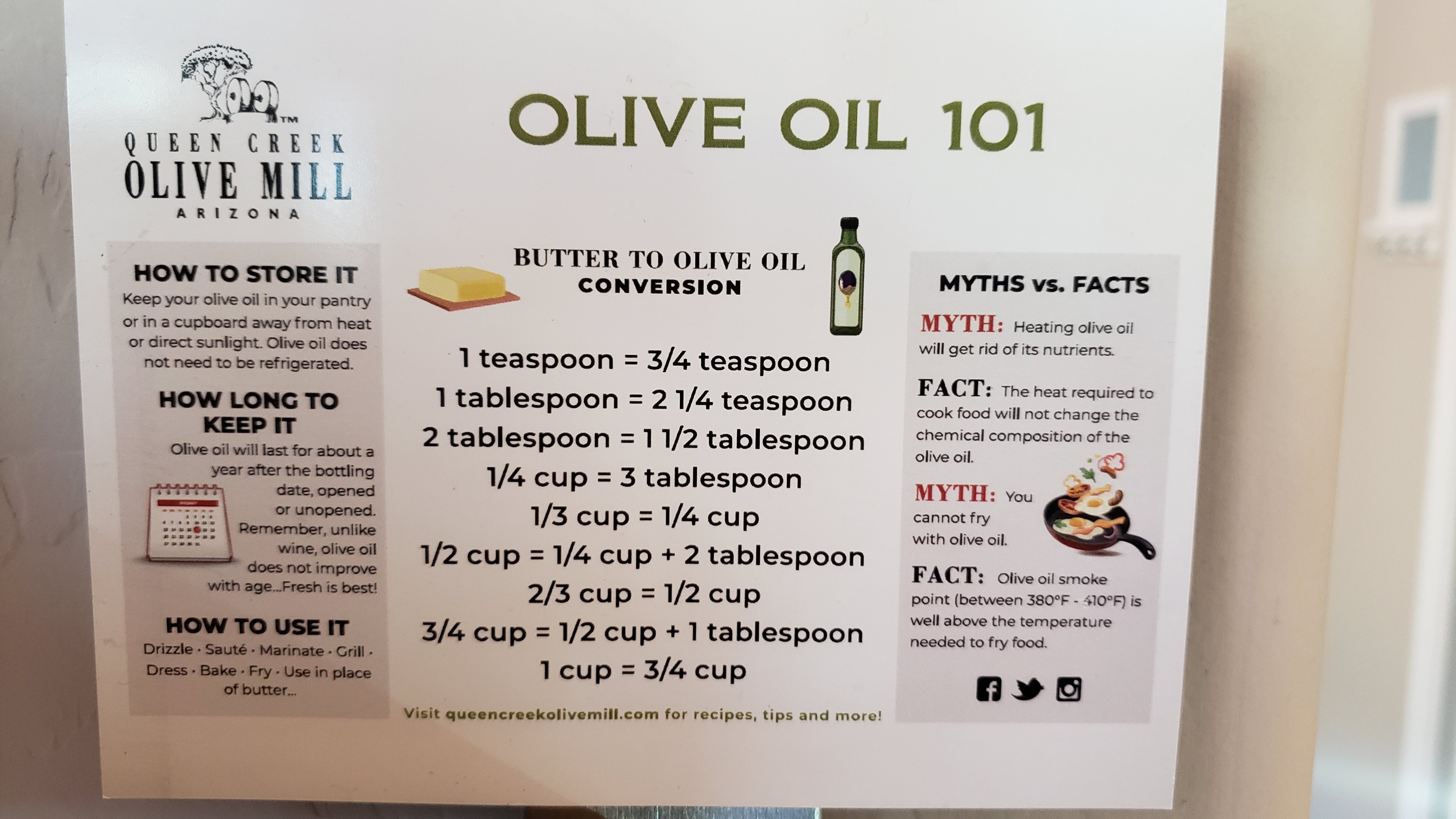 Queen Creek even offers a conversion chart magnet to help with your recipes.
