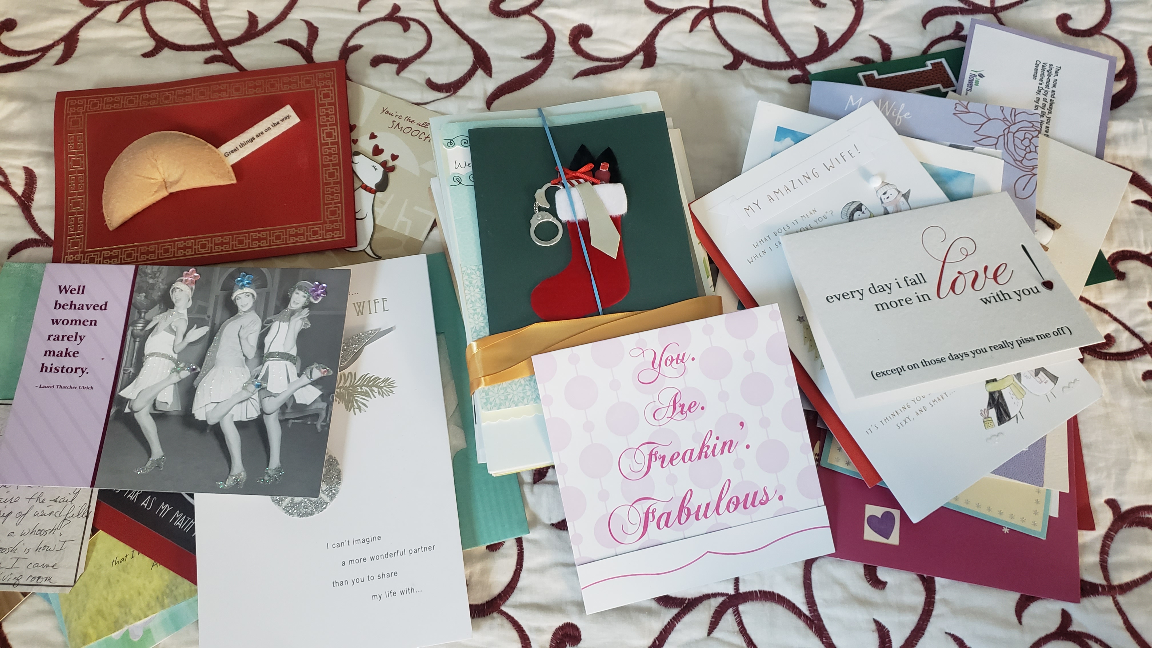 Judy has written about the joy of receiving cards and letters, but today I’m grateful for SAVING all those cards and letters. Reading old cards like these reminds me of why we sent them in the first place, to capture something joyous … to try and capture the love we share in words … to simply say, “thank you.”