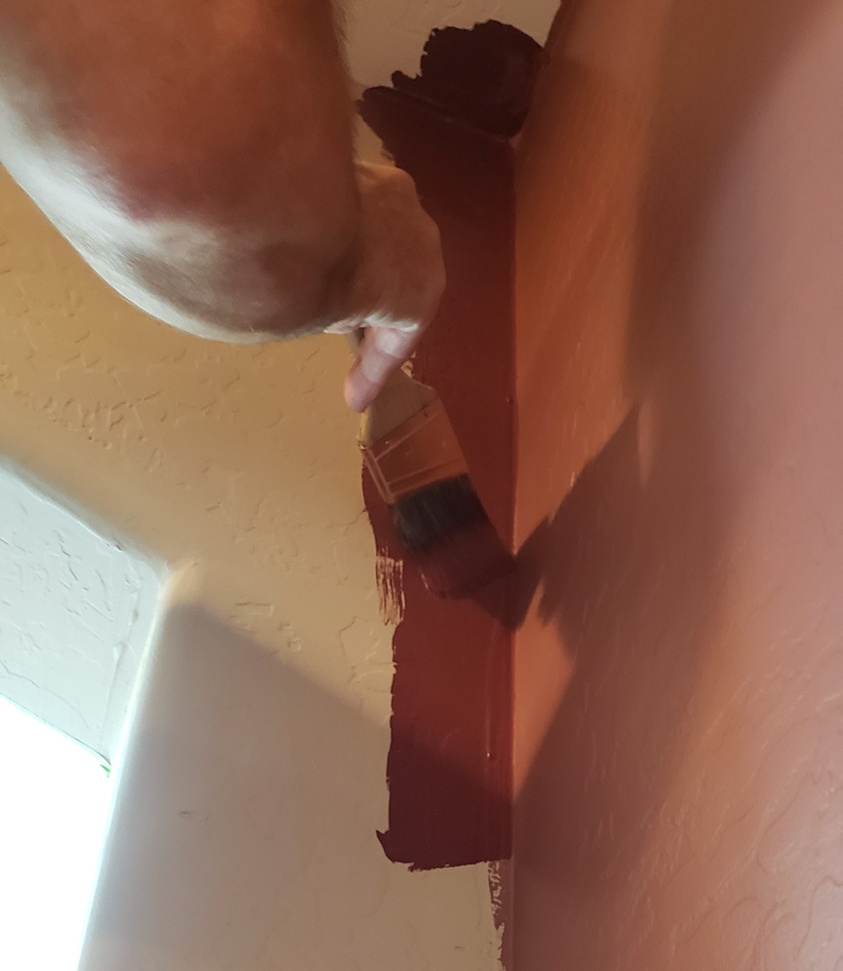 When we paint, I am in charge of the edges along the baseboards and the lower half of the wall, Greg reaches the ceiling line. We meet in the middle.