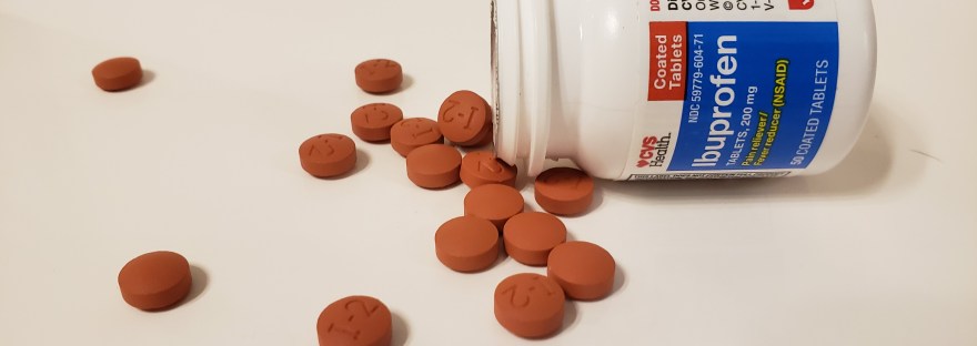 After several days of bending down and sitting on the floor, reaching up to tape and climbing up and down that stupid ladder. I was really feeling sore. I reached for the bottle of ibuprofen. There it is … chemistry.