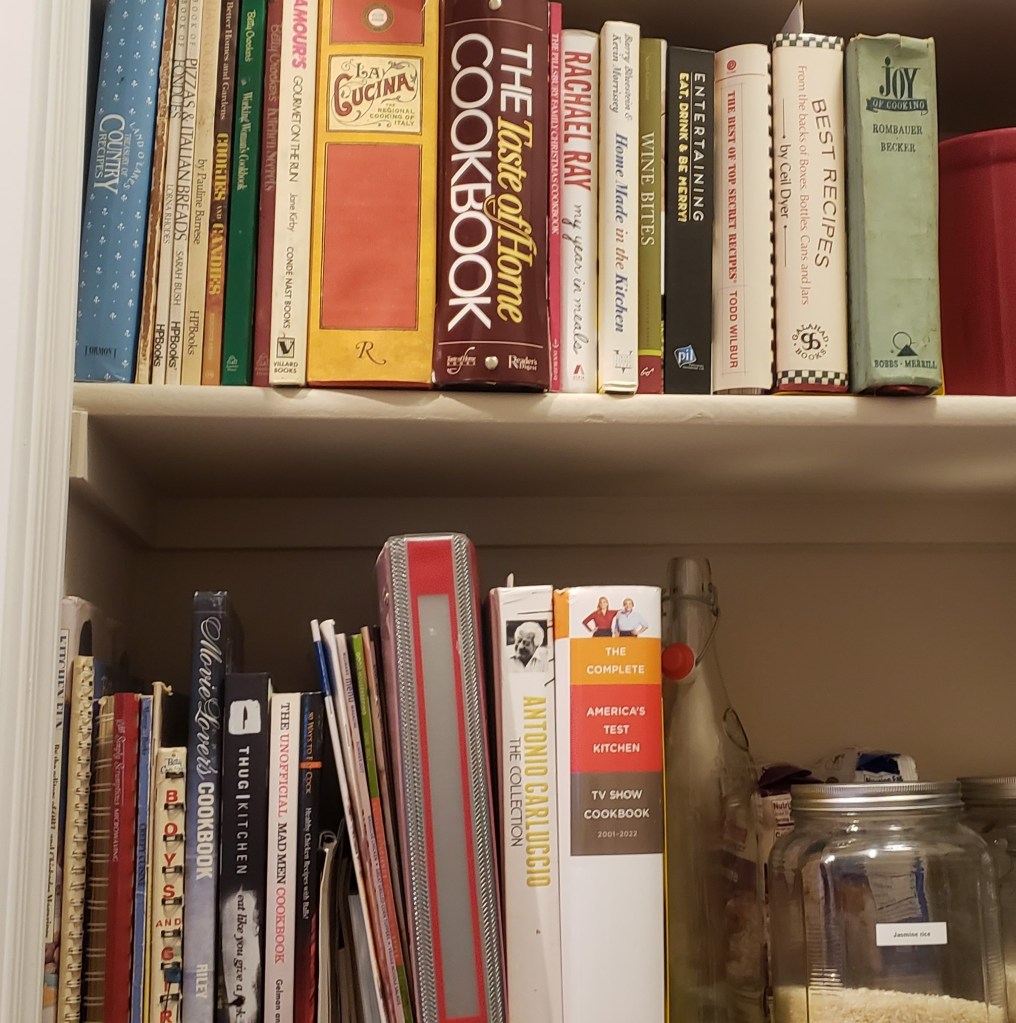 We have two shelves of cookbooks — some old, handed down from our mothers (and their mothers); some new, often given to us as gifts. Our neighbors gave us one over Christmas and we dutifully found an enchilada recipe that looks yummy and made it for them. It was a hit!