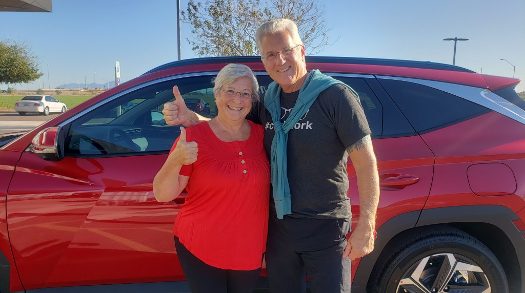 Since we’d recently rented a Hyundai we liked, we ended up at Ken Garff Hyundai. As we drove onto the lot, a pretty red Tucson caught our eye. Before we’d even made it to the showroom door, Steve met us under a beautiful blue Arizona sky and asked if we were looking for anything in particular.
