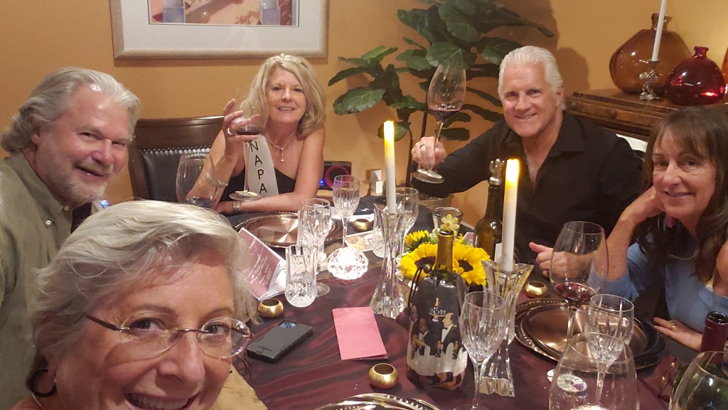 Sunday afternoon, after a relaxing day off, we showered and dressed to dine as “Tiny Bubbles” and “Ralph Rottingrape” as we celebrated the return of the “Napa Valley Wine Festival and Grape Harvest.” As soon as we arrived, the festivities began.