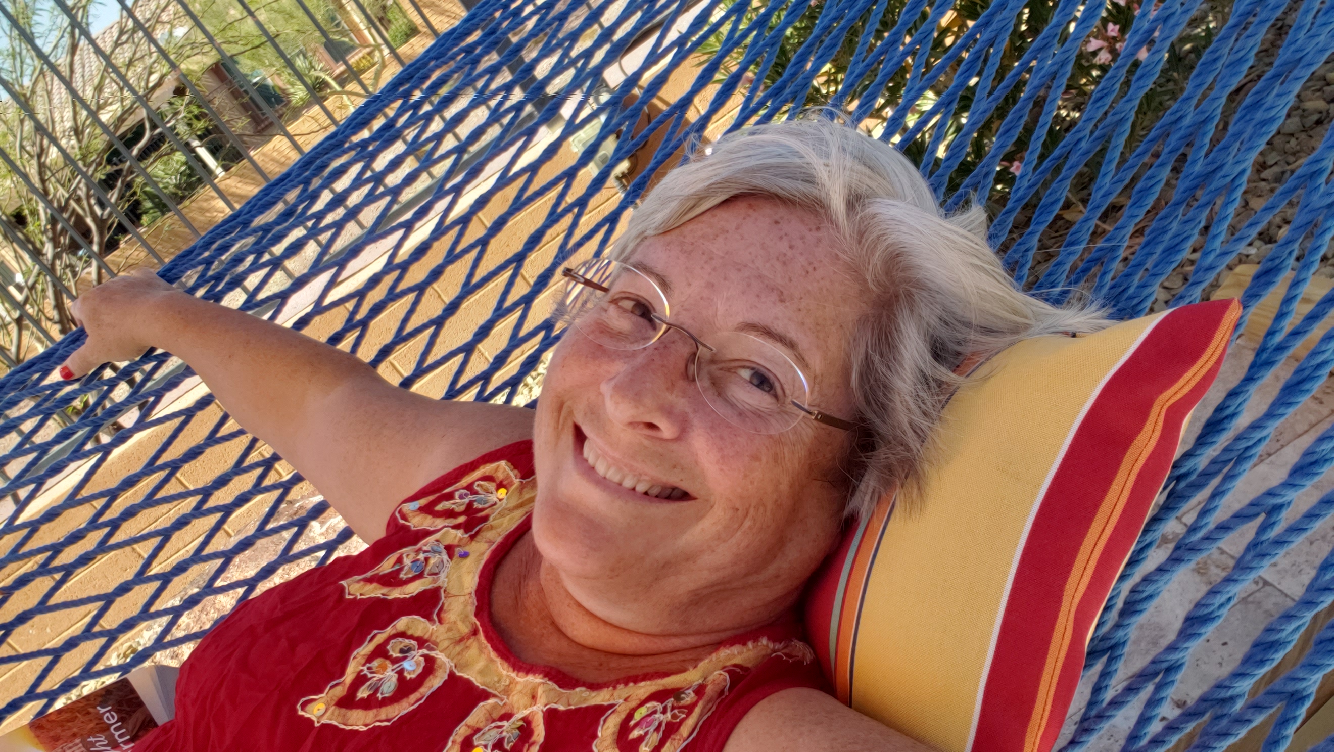 I opened my big umbrella and moved to the hammock where the warm breezes took over and I dozed. Greg even snuck a pic.