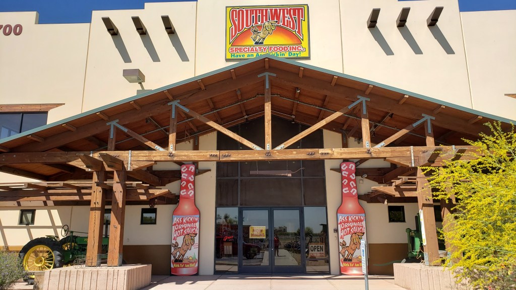 Running errands around Phoenix recently, a brightly colored sign caught my eye. It was the outlet store for Ass Kickin’ Hot Sauce. I didn’t even know it was a local product, but there it was … the store attached to the factory.