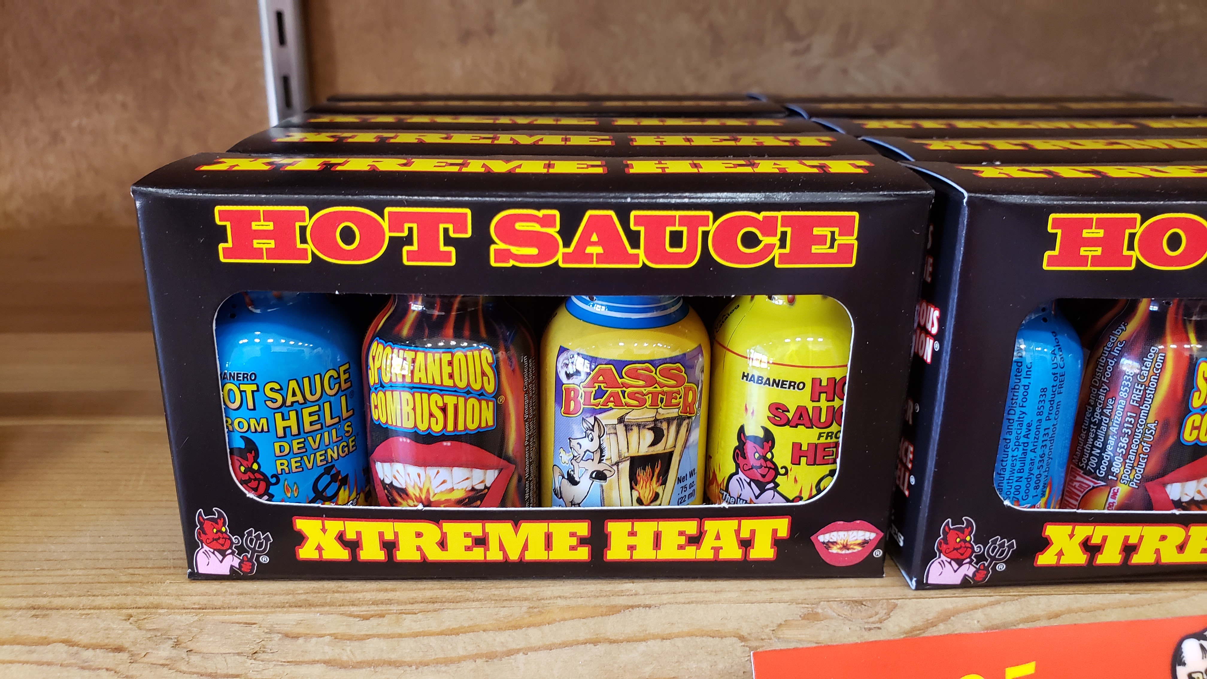 I snagged a few things to share with my daredevil grandkids when they come to visit this summer. It was difficult to choose from so many amazing options. There’s even a whole section of tiny sample-sized bottles for those looking to try one or two … or all … of the levels of heat.