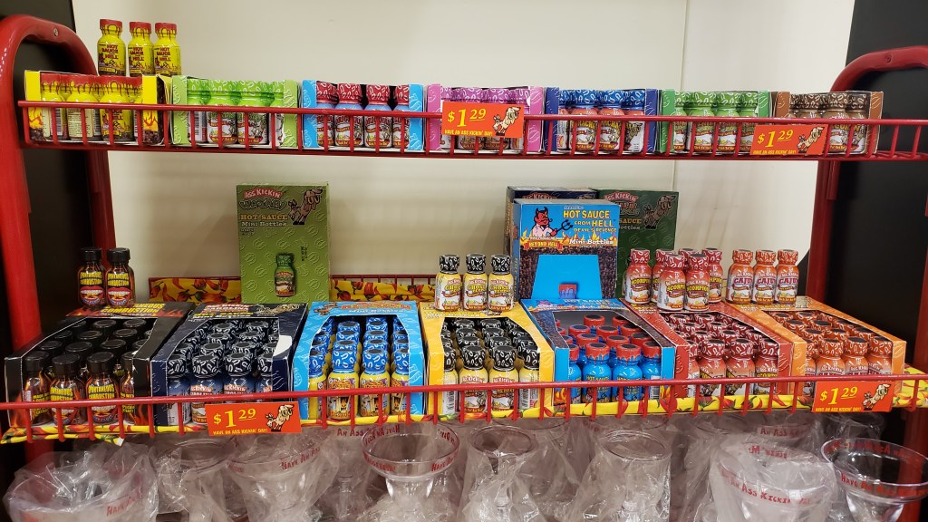 We headed into the relatively small space that was loaded to the brim with every imaginable flavor of Ass Kickin Hot Sauce.