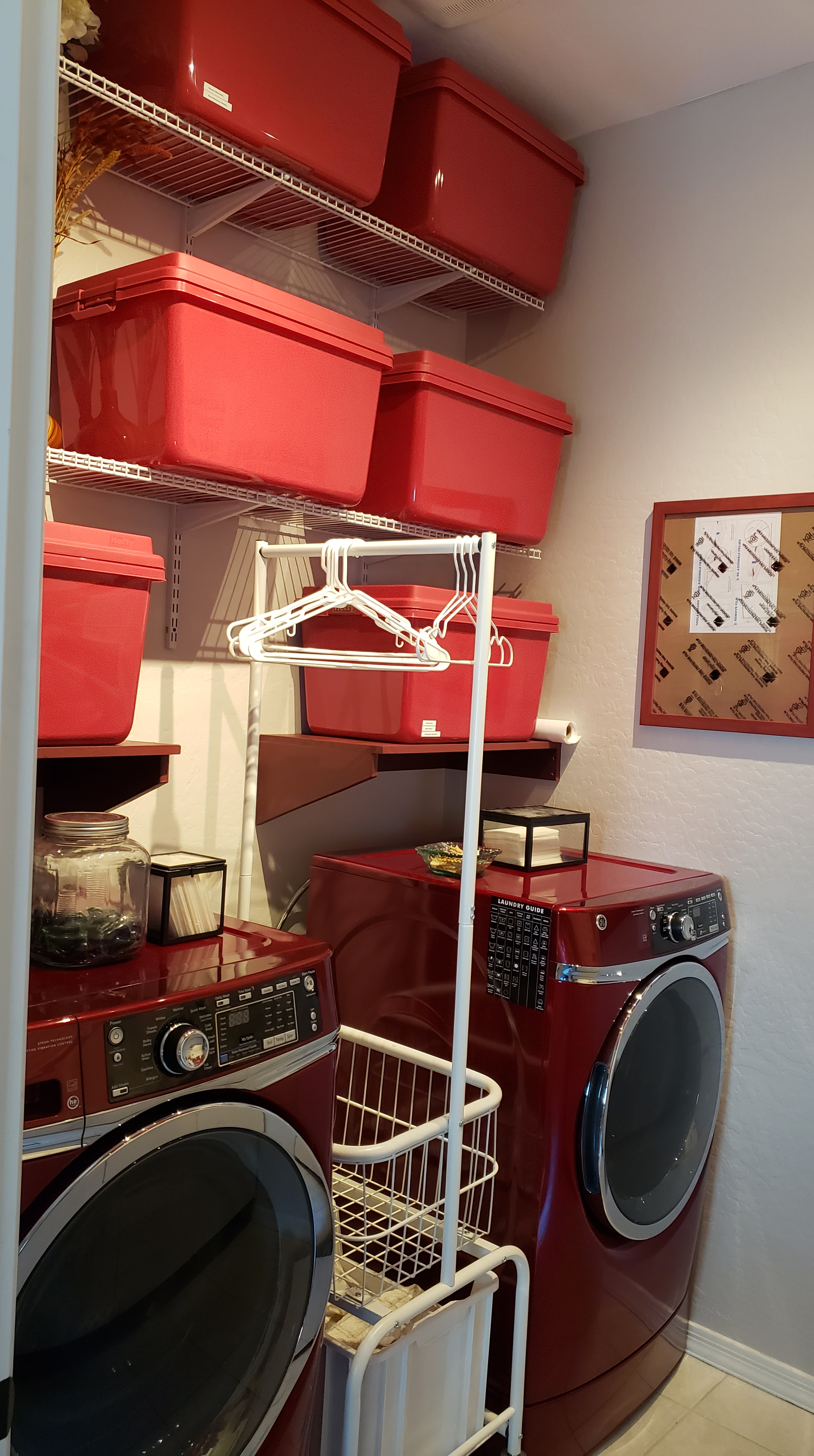 When we moved into our home, we got a new washer and dryer. I’ll be honest, I was a little disappointed that technology hadn’t come up with a machine that could sort, wash, dry and fold my laundry, but at least I got a fancy new set that not only offered a steam refresh setting on the dryer, but came in a pretty red. After all, I reasoned, a laundry room should at least be pretty if you have to be stuck in it doing a chore.