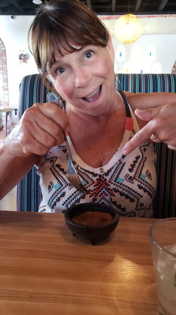 Before that was the day my next-door neighbor and I made our way to the Ass-Kickin’ Hot Sauce outlet store. Right after we left there, we stumbled on a fabulous new Mexican food place, Barrio Queen. We sipped margaritas and ate scrumptious, decadent food while we chatted and laughed away a good chunk of the afternoon.