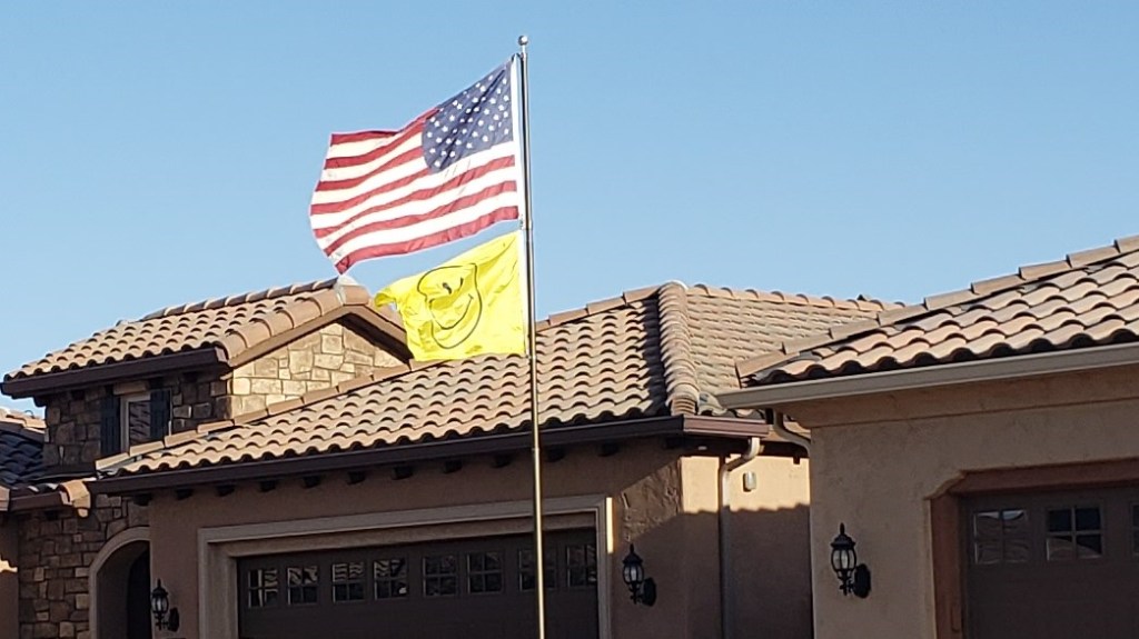 A friend proudly and joyously flying a smiley face flag now that she’s received her final divorce decree after an agonizing fight to the end …