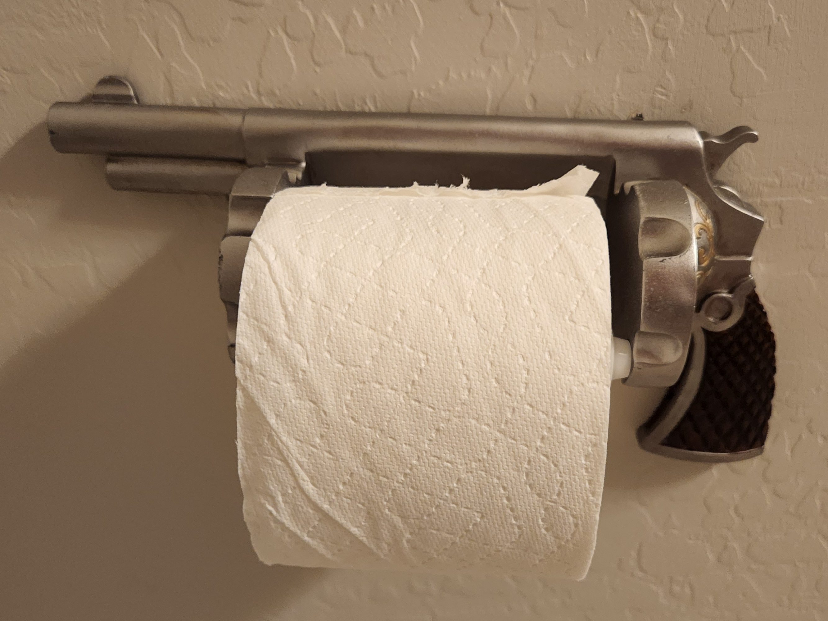 But I hesitate to add too much. The little accents add flavor without taking over. We have friends who are doing the same thing … touches without being overwhelming. A new friend and neighbor, who is a competitive single-action shooter, offers a glimpse of her skills and her love of the west in her powder room.