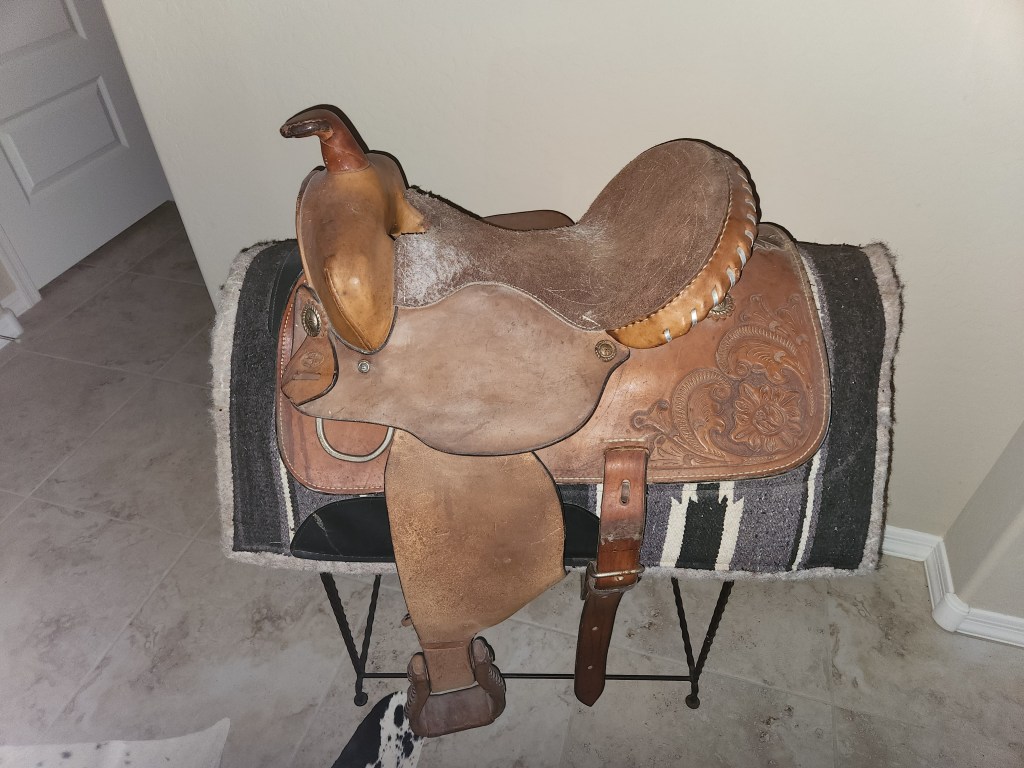 She also has an old saddle on a stand inside her front door that makes me want to saddle up and go for a ride every time I see it.