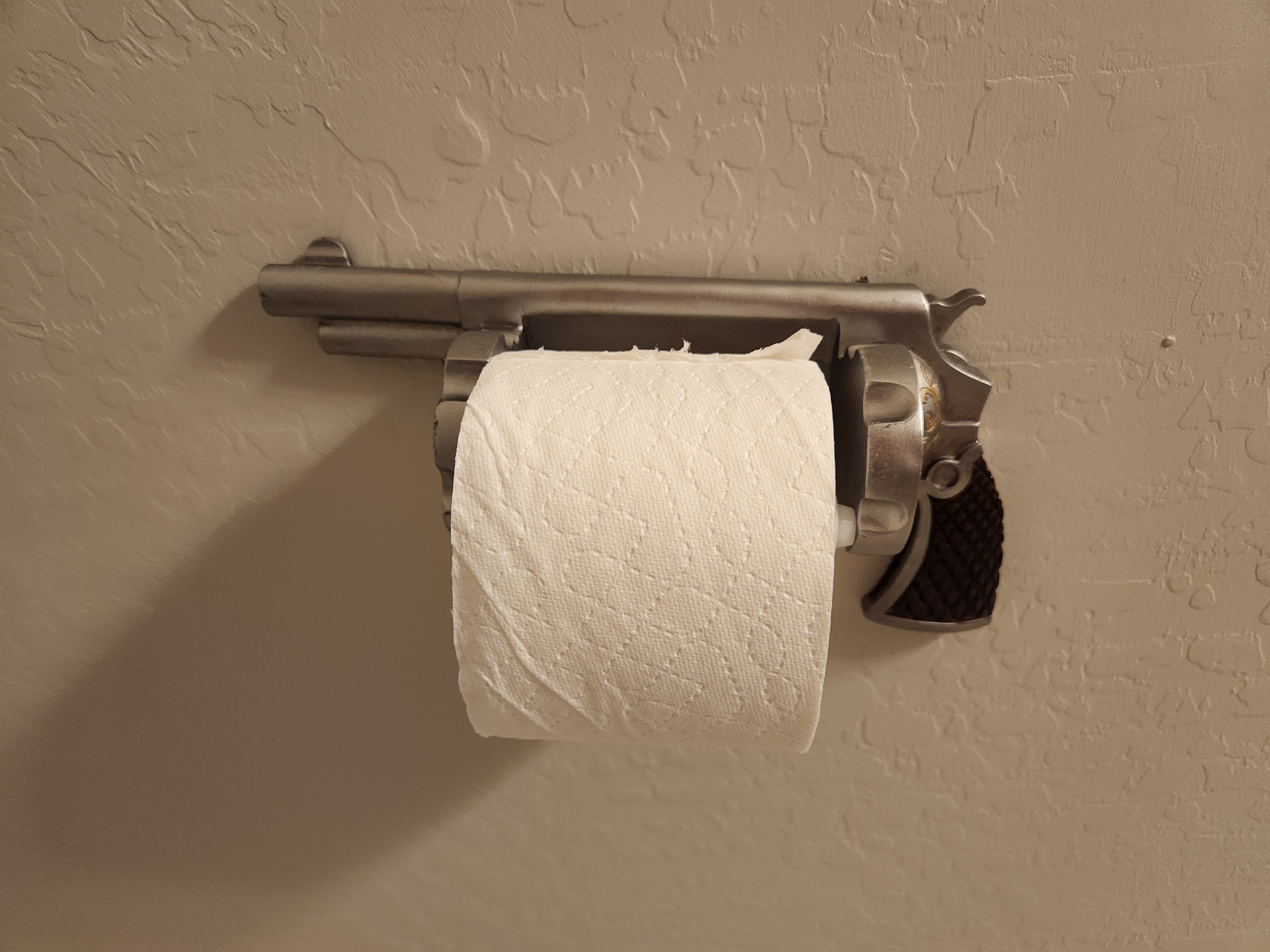 But I hesitate to add too much. The little accents add flavor without taking over. We have friends who are doing the same thing … touches without being overwhelming. A new friend and neighbor, who is a competitive single-action shooter, offers a glimpse of her skills and her love of the west in her powder room.