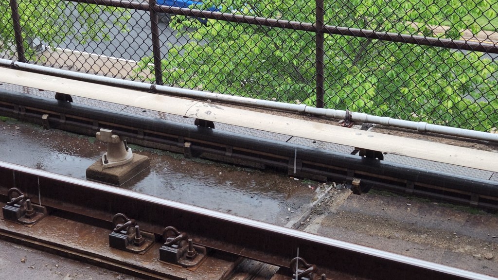 As we walked along the platform to wait for the next train, I noticed the tell-tale bright flash of lightning … and the accompanying mean-looking gray clouds gathering overhead. Then … “CRACK” … thunder roared. In moments, the puddles on the platform started to ripple with rain drops.