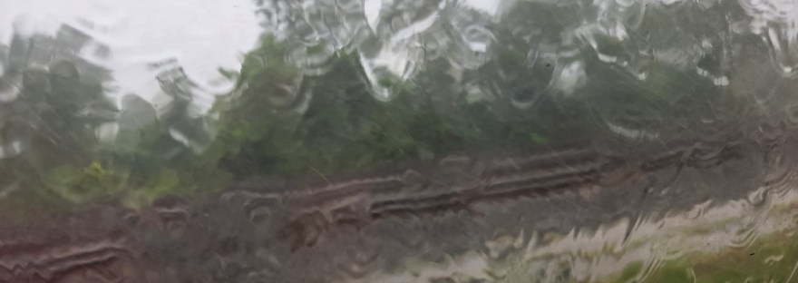On board and safely seated, the train entered a tunnel. As it came out, Mother Nature showed her true force with the pinging and banging of hail. The rain washed over the train windows in streams.