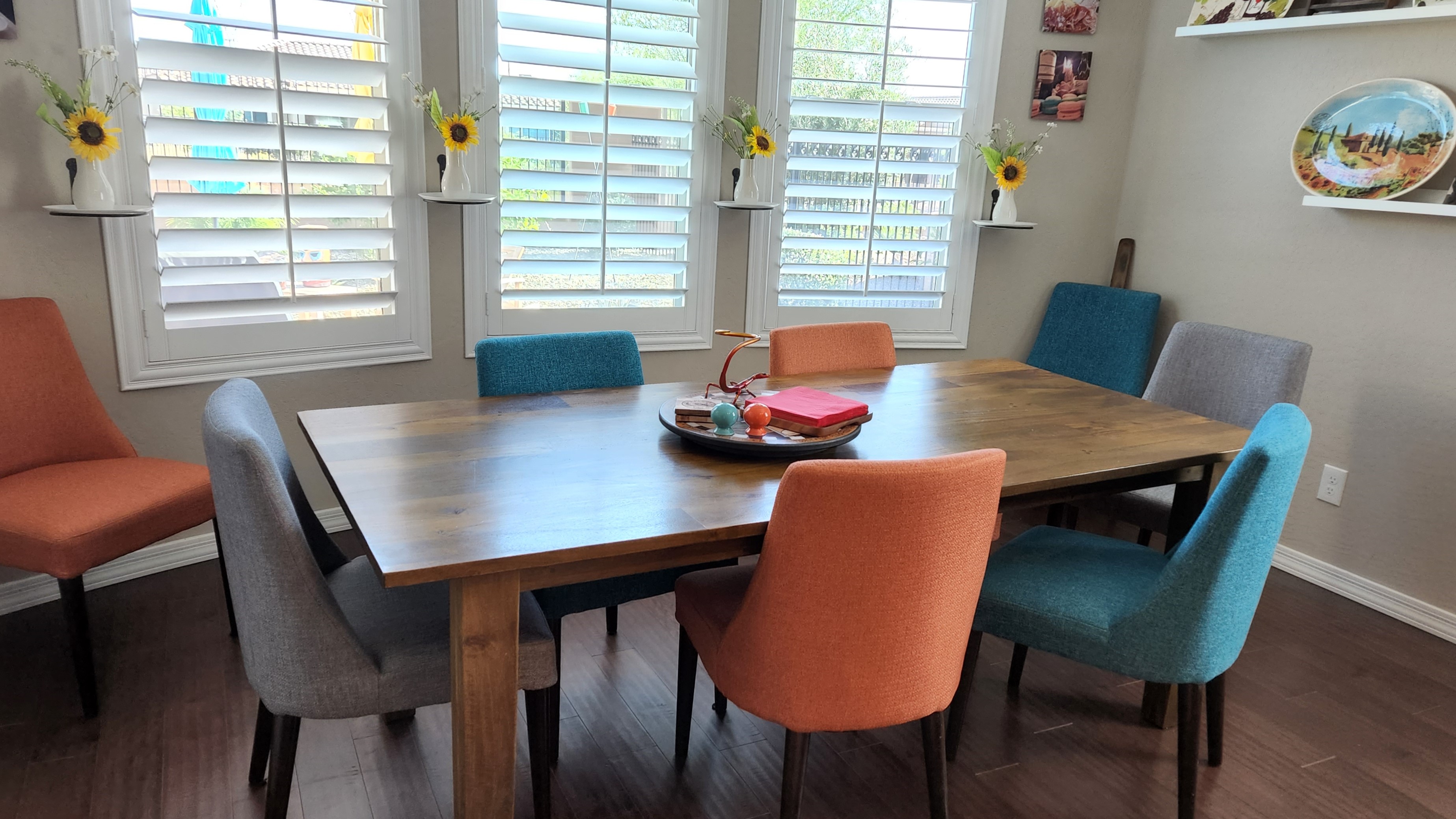 When we moved to Arizona we brought very little furniture. We wanted to replace our very East Coast look with a more western feel. We intended to blend mid-Century modern with cowboy chic. Early on we added some affordable chairs to our dining room.