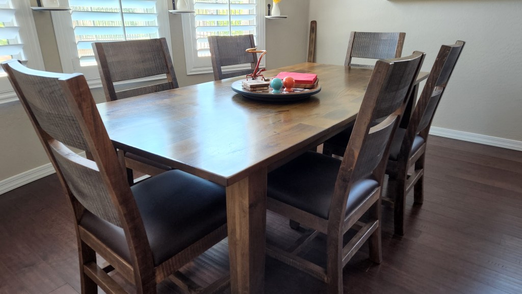 Luckily, we managed to solve the puzzle of fitting six chairs into the SUV. Our dining room is transformed. It’s amazing how just a few chairs can make such a big difference.