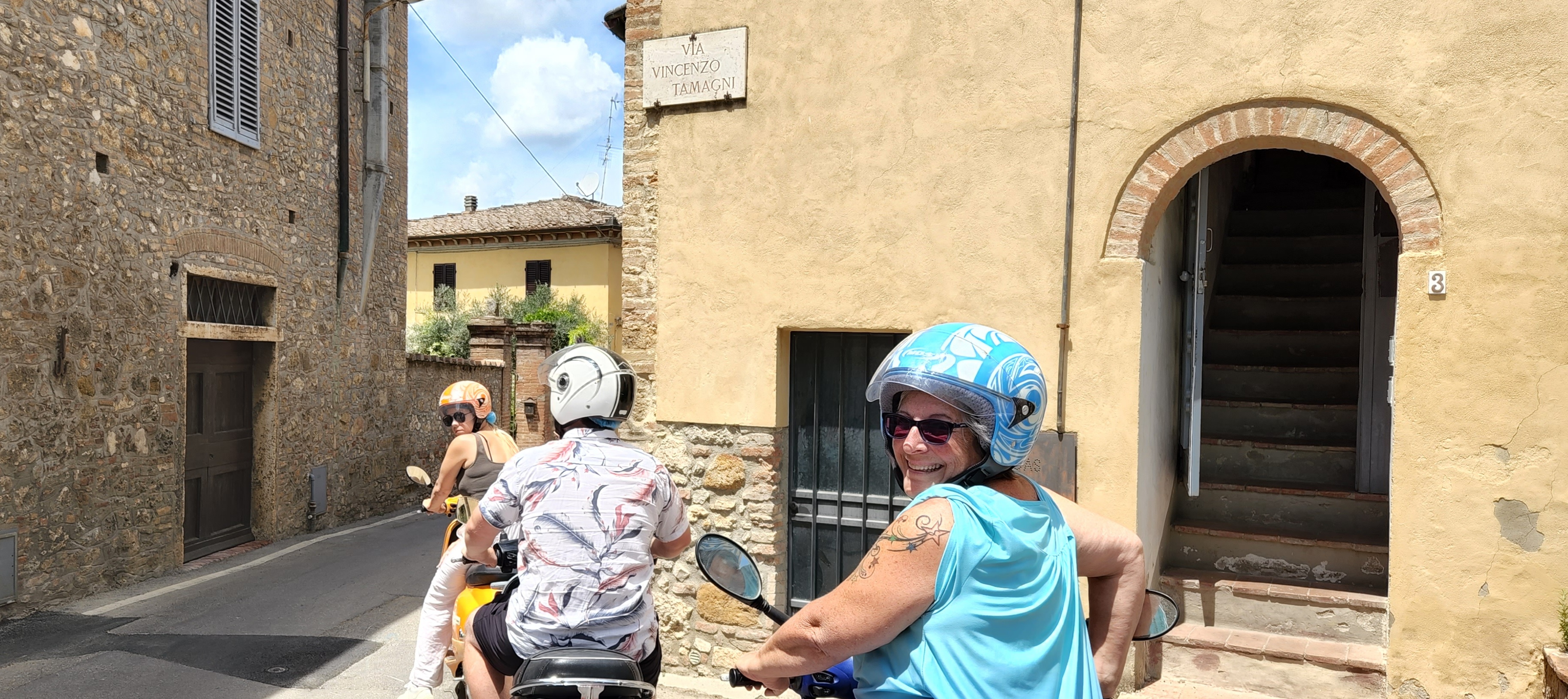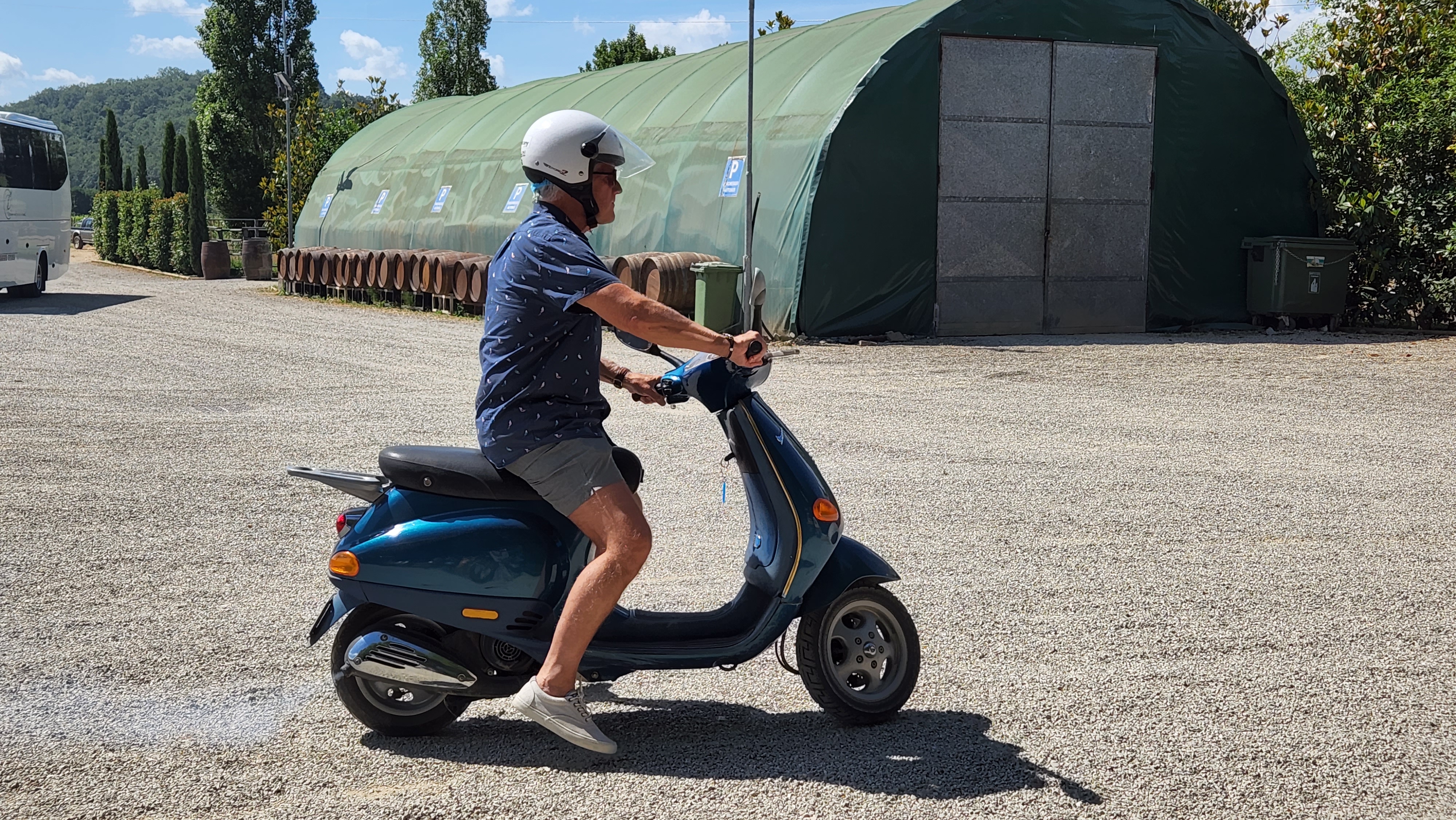 If you’ve ridden a motorcycle or even a mini-bike in your youth, the Vespa is fairly easy to ride. But for anyone who’s ever driven in Italy, the idea of guiding a scooter in traffic is daunting. We were assured it wasn’t as bad as we might expect, so we learned a few steering and braking tricks and guided our rides onto the roadway.