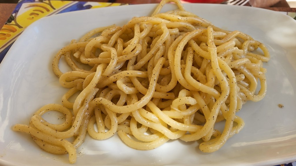 The pasta is insanely fresh and topped with so many different things. There’s cacio e pepe, bolognese, sausage and truffles, pomodoro … the list goes on and on.