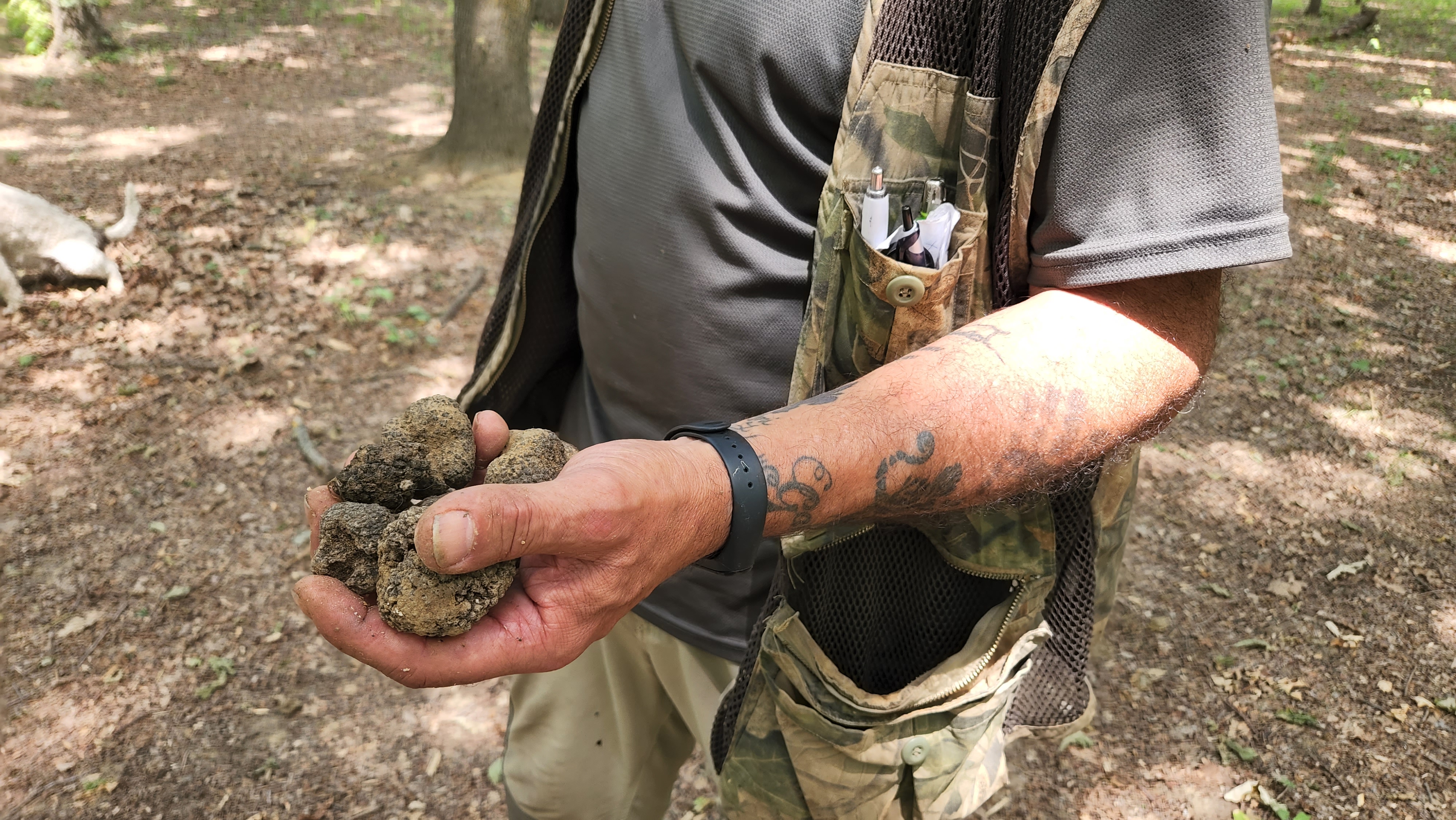 Moreno would order the dog to stop digging. He would take over and uncover the truffle by digging down through the dirt and turning it with a special tool. He demonstrated the technique, then gave each of us a chance to give it a try.
