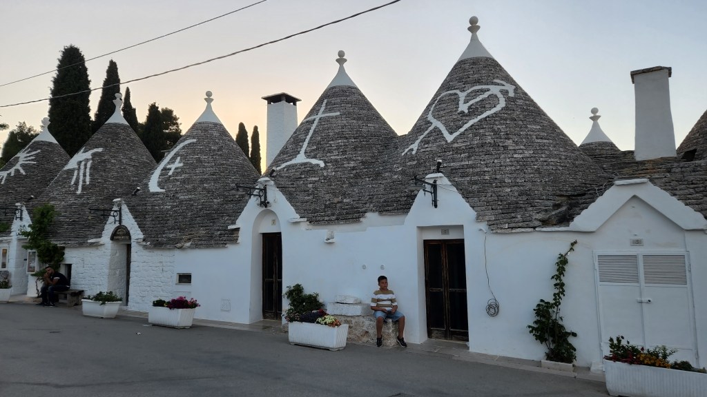 In the southeastern region of Puglia lies a village (OK, it’s a city now) that is the only place of its kind in the world. The homes in the village are round and protected by unusual conical roofs. They are called Trulli.
