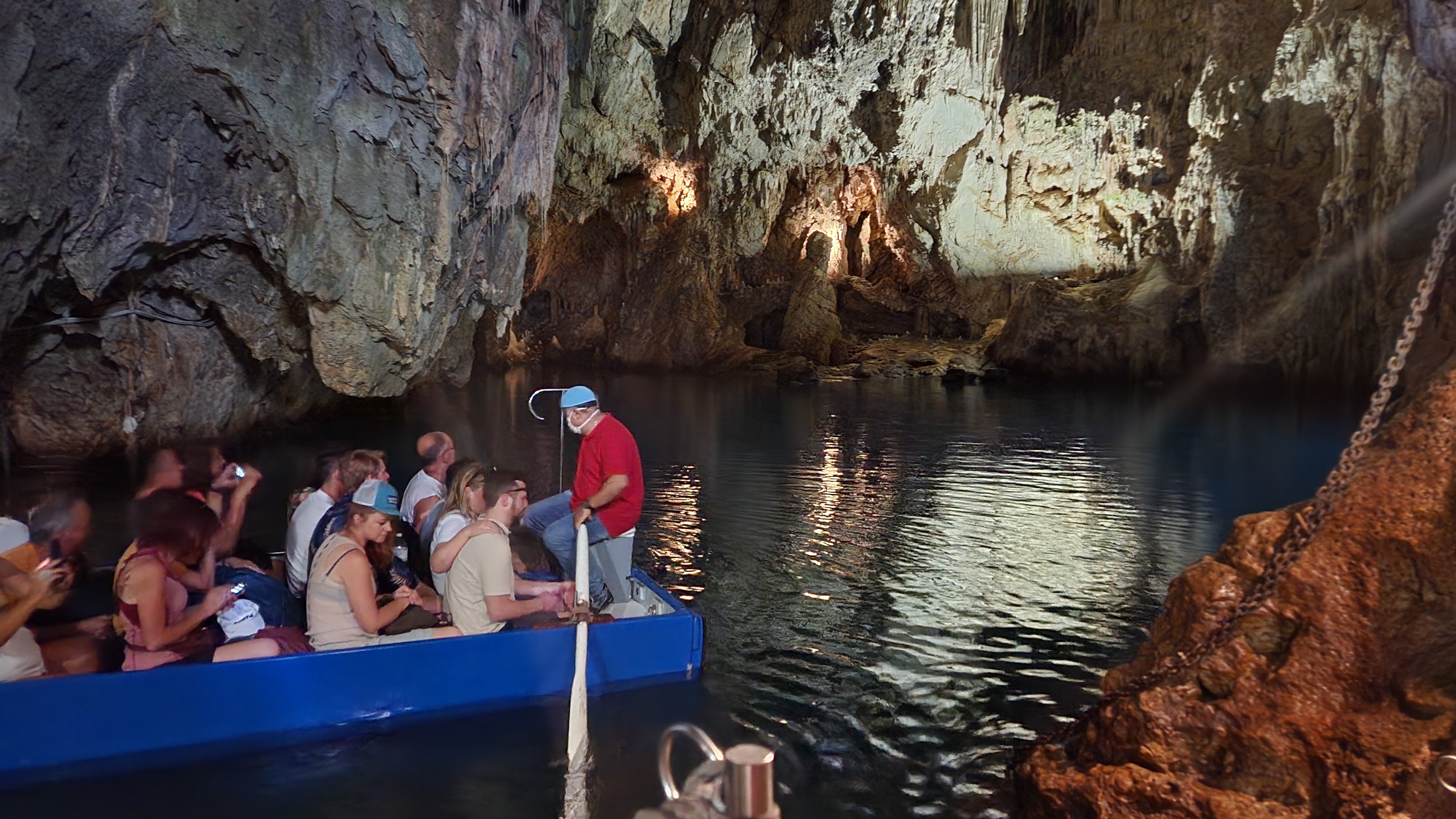 The salt water filters out all the other light and “pulls” the light into the cave. For that reason, midday on a really sunny day is the perfect time to see it. Carmine knew this … so our stop just after lunch gave us the ultimate viewing opportunity.