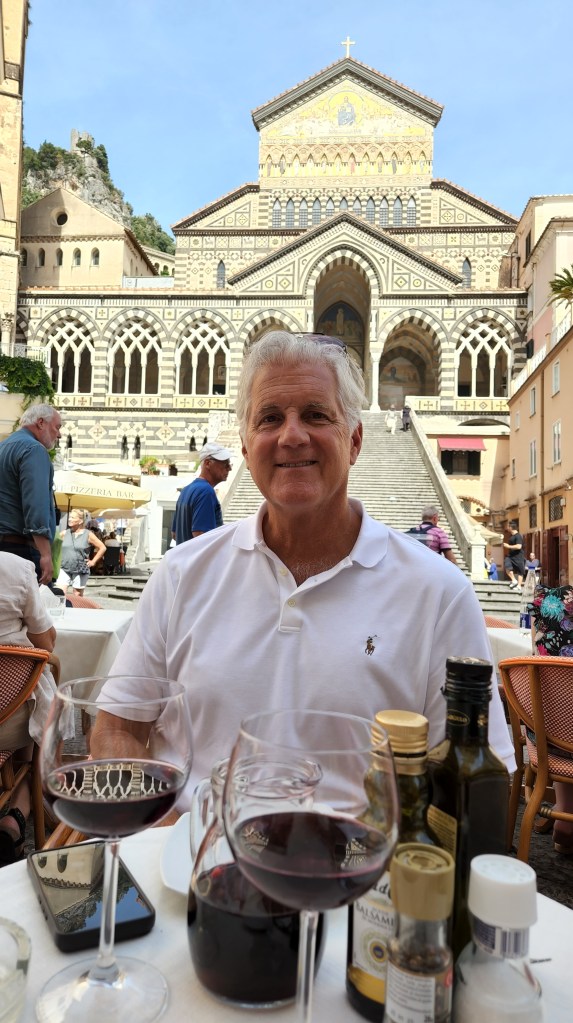 – When faced with the choice of white or red on a very hot day, consider wisely. At a cafe on a piazza in Sorrento, the waiter asked us which we wanted and when we said red he gave us a smile of approval and responded, “Si, si” … which literally means “yes, yes” but can be translated into “good choice.” A brief glance around at the other tables revealed no carafes of white to be seen.