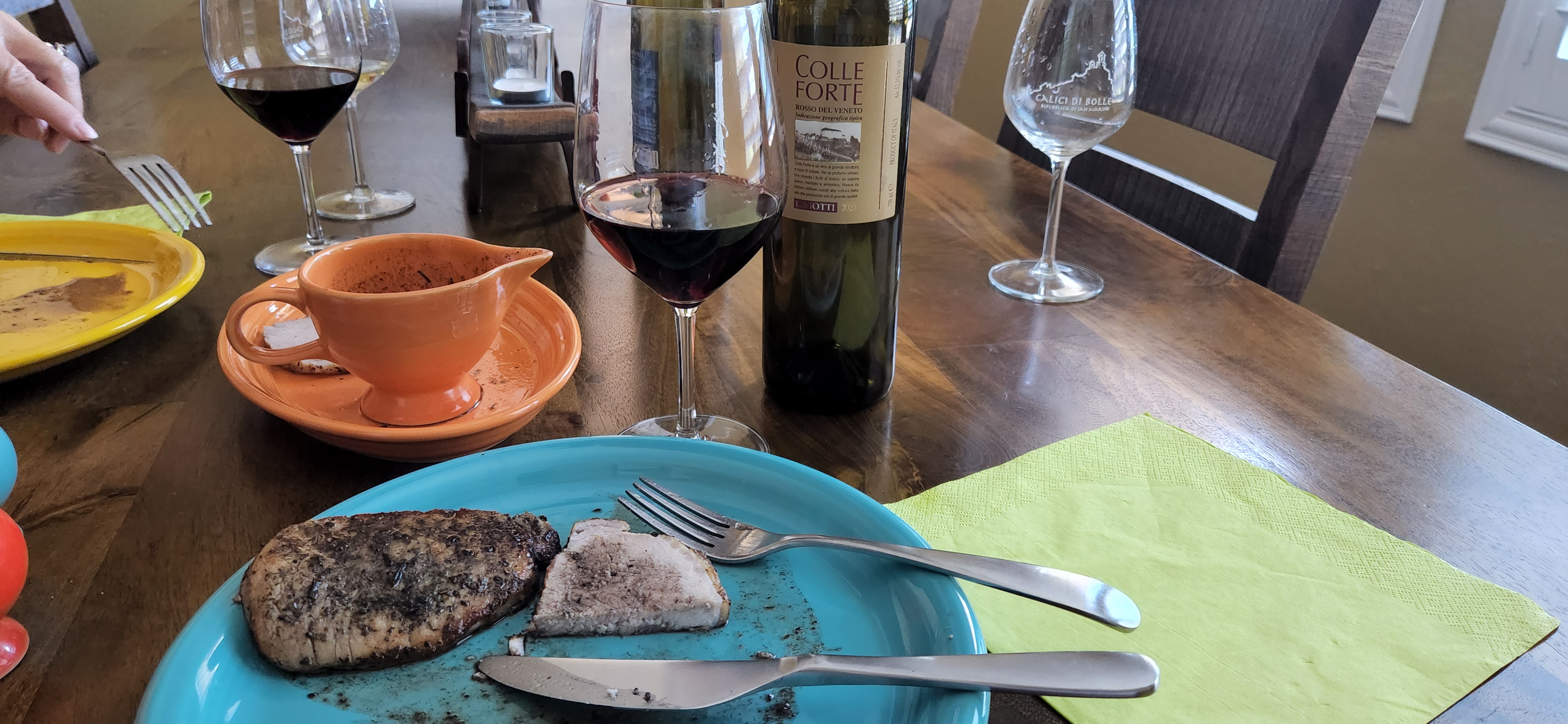 There was wine, of course, white with the pasta and red with the pork loin … the latter a fabulous northern Italian red our fabulous wine consultant Liza introduced us to nearly two-and-a-half years ago. It’s as good today as it was back then.