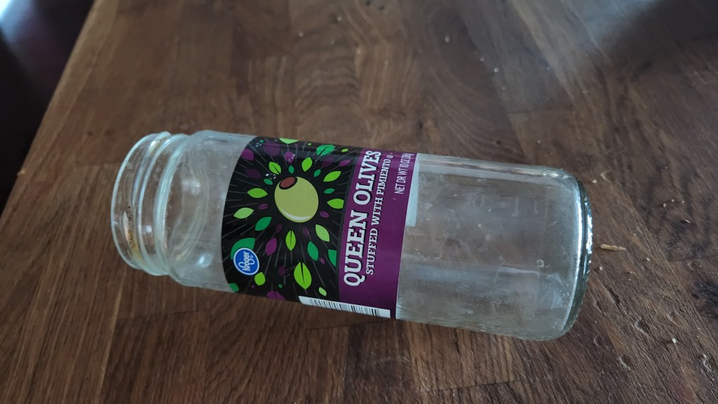 There was a leftover piece of apple cobbler, but I’d had the other piece for lunch, so … nope. I grabbed the bottle of olives and ate the last four as I moved to the pantry to see if I could find something there.