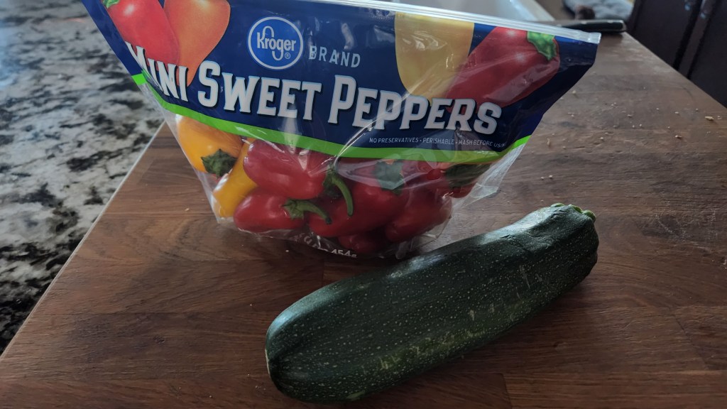 About an hour later I knew that ramen wasn’t going to hold me over. I carefully reviewed the food I’d eaten throughout the day. I had my regular breakfast of Cheerios and fruit, a piece of cobbler for lunch, four jumbo olives, two Oreos and a package of ramen. Well … except for breakfast I’d managed to revert to eating like a college student. If I needed something more, I should grab some veggies and cut ’em up.