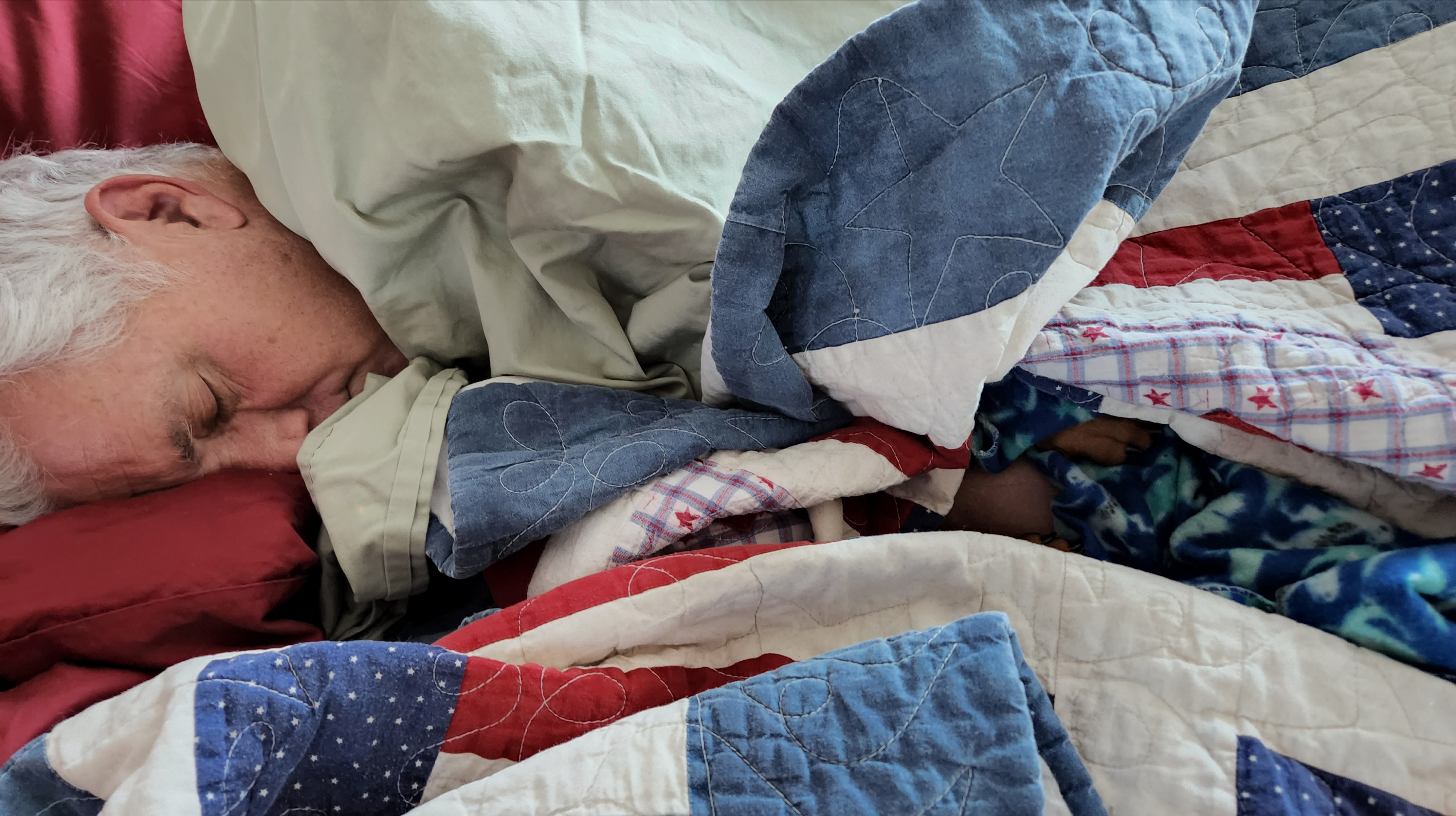 Greg got home a few hours later and Enzo snuggled right into him. The pair slept together like a classic “boy and his dog.”