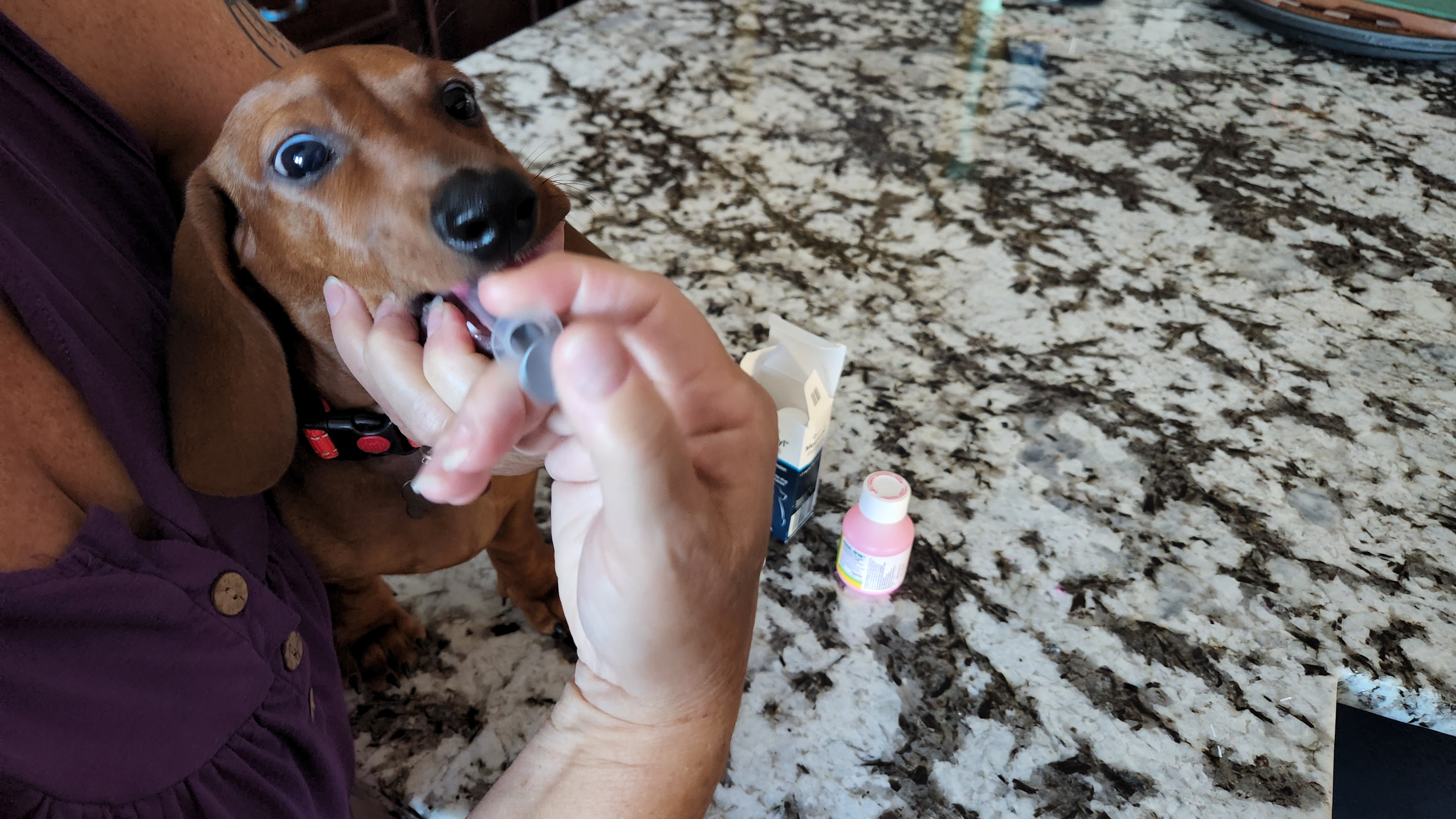 The picture showed there was nothing wrong, so the vet suggested the likely culprit was a UTI. He said it’s fairly common in dogs and easily treated. They gave little Enzo a shot to get him started on an antibiotic and I went home with a pint-sized bottle of amoxycillin.