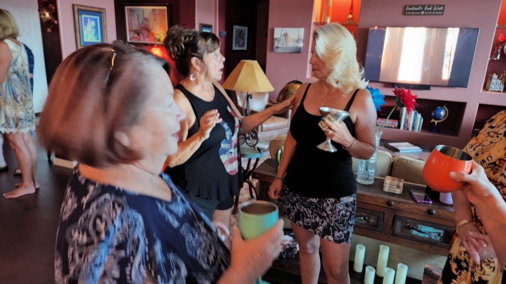 Then COVID really amped up. Our end of the block split into safer “pods” of friends and our group dropped from two dozen to six (sometimes eight). It was still social. Those friends became family. It was fun to get together, but the big group dynamic was missing. As COVID eased, we all said hello and stopped to chat on our walks, but the monthly parties never returned. Until now!
