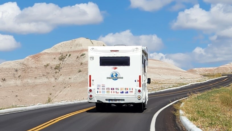 We took the backroads to the eastern entrance to the Badlands National Park at Interior, SD and headed west to Wall on the Badlands Loop Road. RVs, travel trailers, and SUVs were among the others exploring this majestic part of the country … we even followed a Caravan that had come from France!